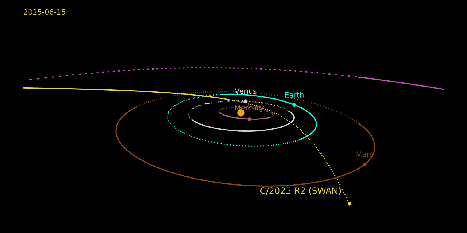 Comet C/2025 R2 (SWAN) is a long-period comet. It reached perihelion on September 12, 2025, only a day after it was discovered! Before that, the comet was hidden in the Sun’s glare and too faint to detect, evading even the most diligent sky surveys. On October 20, 2025, C/2025 R2 made its closest approach to Earth, coinciding with that of Comet C/2025 A6, offering northern-hemisphere observers the rare opportunity to enjoy two bright comets this Fall. Because C/2025 R2 was discovered so late in its journey, we missed observing its brightening phase near perihelion, making it especially valuable to monitor its fading activity as it recedes from the Sun.